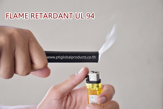 ซีลยางกันลามไฟ ( Flame Retardant Rubber Seals ) ซีลยางโปรไฟล์ที่มคุณสมบัติกันลามไฟ เมื่อเกิดเหตุเพลิงไหม้หรือกรณีฉุกเฉินที่ไม่อาจคาดฝัน ซีลยางโปรไฟล์กันลามไฟนี้จะทำหน้าที่ยับยังการลามไฟ ด้วยสูตรยางคอมปาวด์ที่ได้ผ่านการพัฒนามาเฉพาะป้องกันการลามไฟ พร้อมการพัฒนาสูตรให้มีคุณสมบัติเฉพาะสำหรับการใช้งานด้านซีล และการผลิตด้วยกระบวนการเอ๊กซ์ทรูชั่นไหลยางคอมปาวด์ผ่าน Die-Extrusion ที่ออกแบบมาในรูปแบบหน้าตัดต่างๆตามแบบ Spec. การใช้งาน สูตรยางคอมปาวด์ที่ผ่านการพัฒนาและทดสอบพร้อมมีใบ Cer. รับรอง UL94 V-0 ที่พร้อมให้บริการผลิตซีลยางโปรไฟล์สำหรับการใช้งานอุตสาหกรรมต่างๆ อาทิเช่น ซีลยางขอบประตูหนีไฟ ซีลยางขอบกระจกสำหรับโครงสร้างอาคาร ซีลยางประกอบเครื่องจักร เป็นต้น