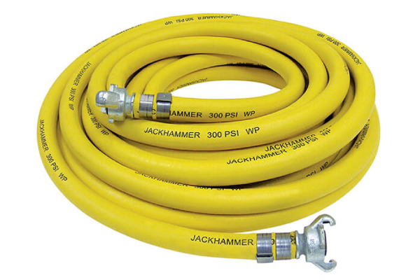 เป็นท่อเสริมแรงที่มาพร้อมกับข้อต่อแบบยูนิเวอร์แซลทั้งสองด้านของท่อยาง ทำให้สะดวกและง่ายต่อการนำไปใช้งาน โดยเฉพาะการใช้งานกับอุปกรณ์ pneumatic หรือเกี่ยวกับปั๊มลม โดยท่อยางประกอบด้วย 3 ชั้น คือ ชั้นท่อ ชั้นเสริมแรง และชั้นหุ้ม ตัวท่อและชั้นหุ้มผลิตจากวัสดุประเภทยาง NR และ SBR พื้นผิวเรียบ การเสริมแรงจะใช้เส้นใยโพลีเอสเตอร์แบบถักที่ทนต่อแรงดึง 1 หรือ 2 ชั้น ทำให้ทนต่อแรงดันขณะทำงานได้สูงถึง 900 PSI ท่อลมแจ็คแฮมเมอร์มีข้อควรระวังเรื่องความทนทานต่อน้ำมันที่ต่ำ จึงไม่ควรนำไปใช้งานกับเครื่องมือส่วนที่ต้องสัมผัสน้ำมันหรือสารหล่อลื่น แต่อย่างไรก็ตามท่อยางมีคุณสมบัติเชิงกลที่ดี มีความทนทาน เหมาะกับการใช้งานหนัก หรือสภาพแวดล้อมที่รุนแรง