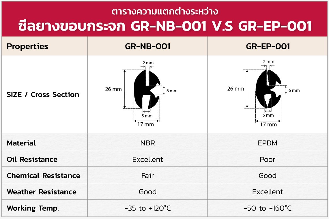 ความแตกต่างระหว่างซีลยางขอบกระจก GR-NB-001 V.S GR-EP-001
