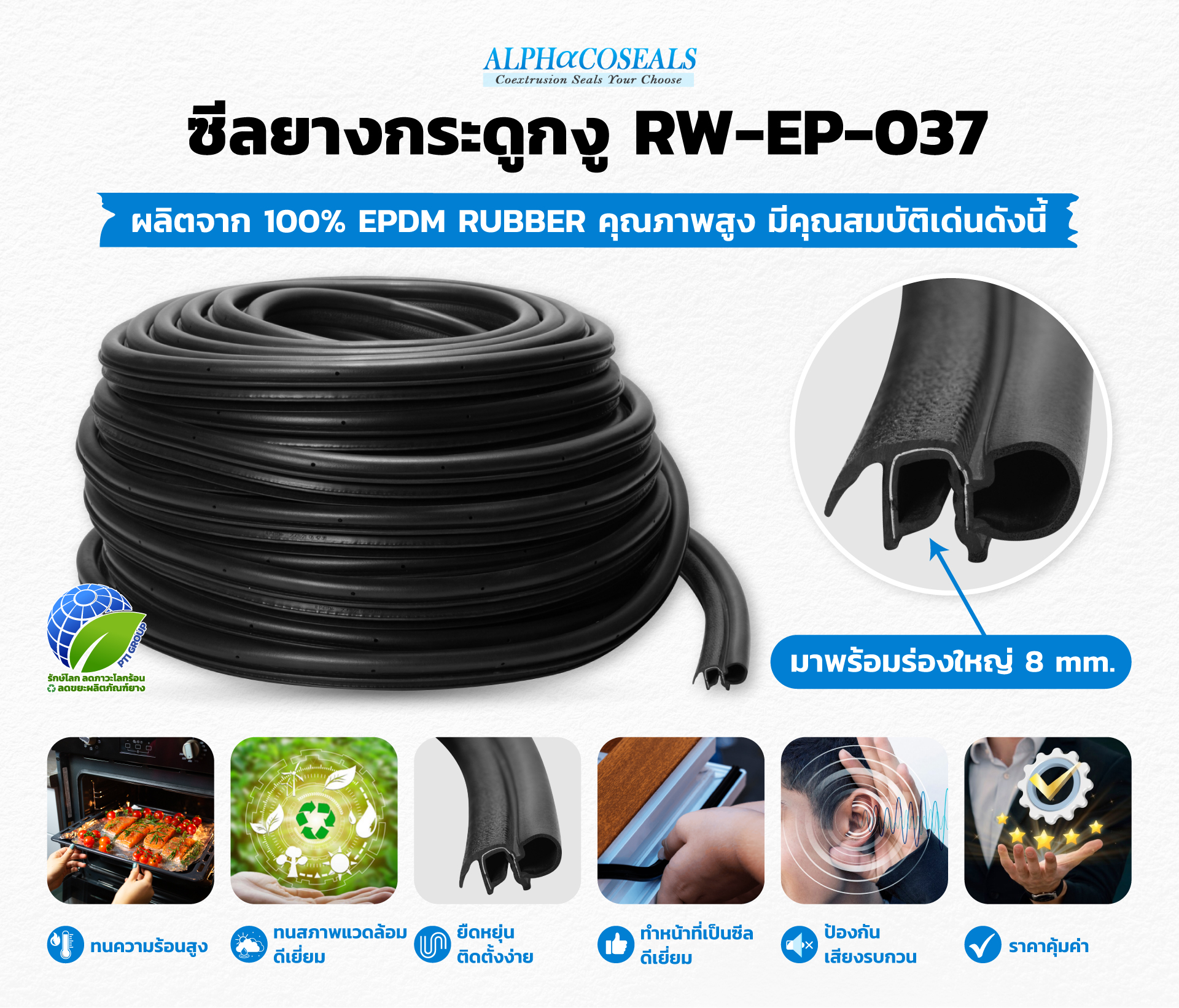 ซีลยางกระดูกงู RW-EP-037 กันน้ำและความชื้น มาพร้อมร่องใหญ่ 8 mm.
