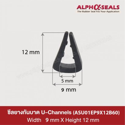 EPDM Rubber U-Channels Size W.9 mm x H.12 mm x G.5 mm Anti-cut rubber seal Anti-cut rubber seal Suitable for 5 mm slots