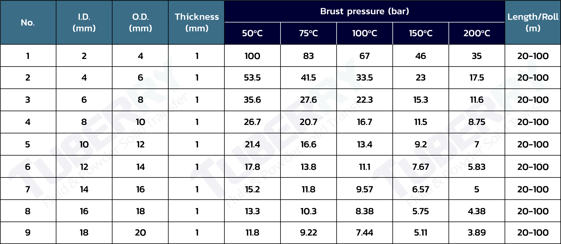 and receive production according to Spec. for your use Length per roll starts at 20 meters, 50 meters, and 100 meters, depending on the size of the PTFE Tube