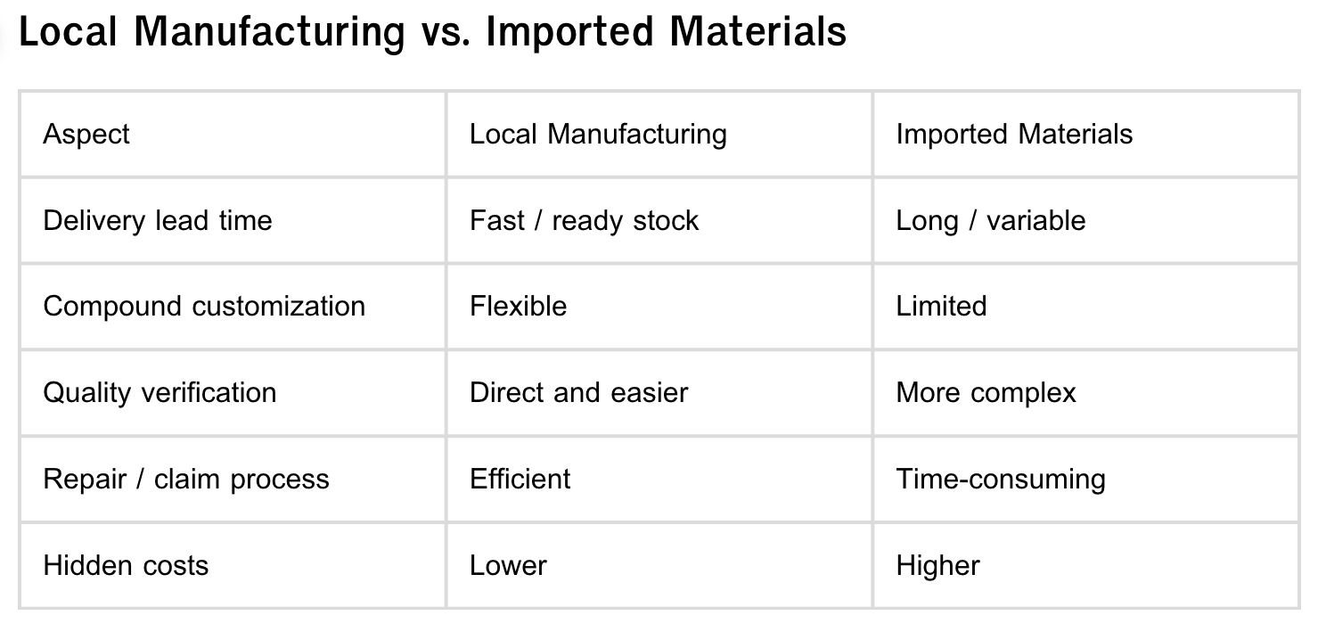 Given real-site constraints and schedule sensitivity, local manufacturing often provides superior BOQ control and risk mitigation.