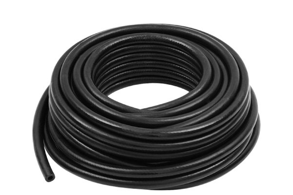 The OIL HOSE-15 BAR is specifically designed for the transmission of oil, while also being suitable for use with water, air, or for various industrial purposes. This hose is manufactured from 100% NBR (Nitrile Butadiene Rubber), offering exceptional durability against petroleum oils. It is reinforced with Polyester to enhance strength and can withstand high pressure. The exterior is coated with NBR/PVC, making it abrasion-resistant, ozone-resistant, and able to withstand challenging environmental conditions. This makes it highly suitable for oil transmission or for industrial applications.