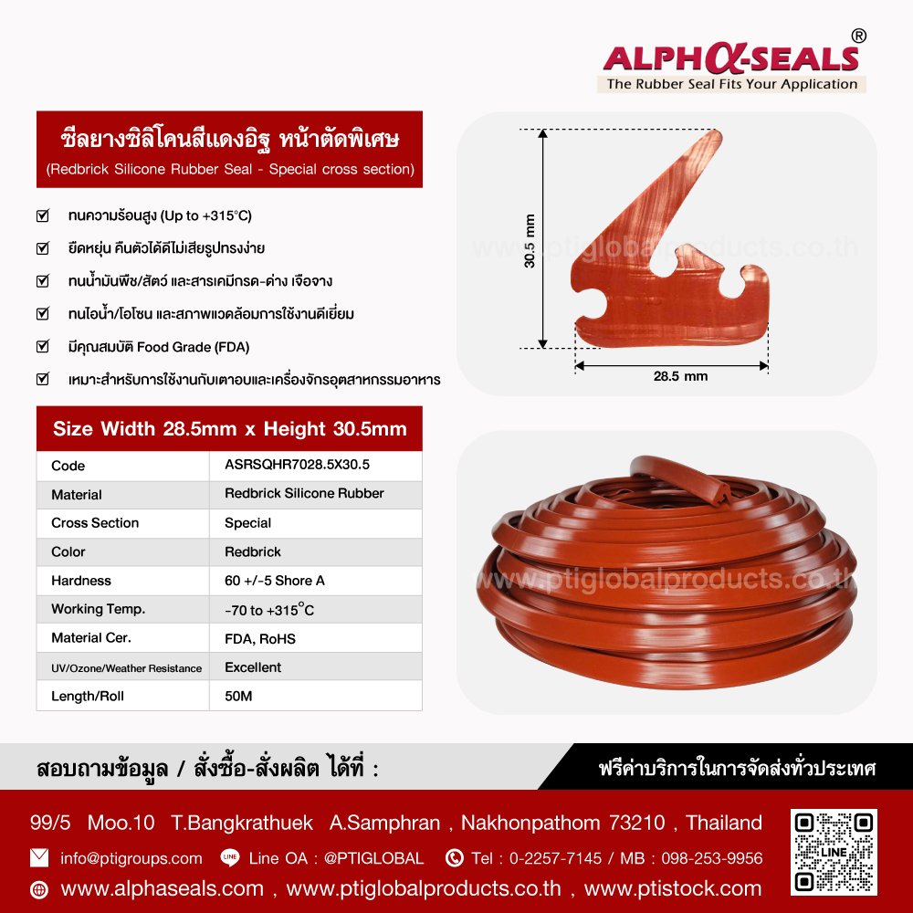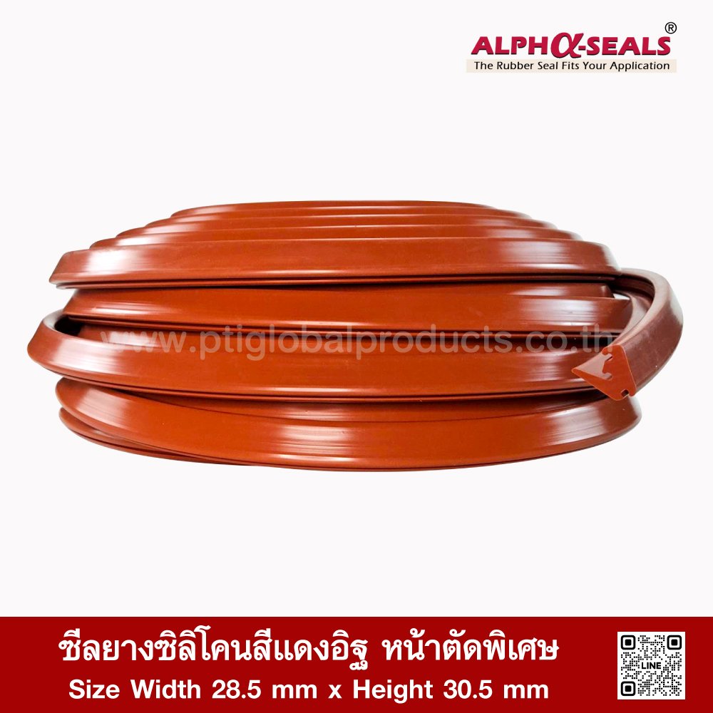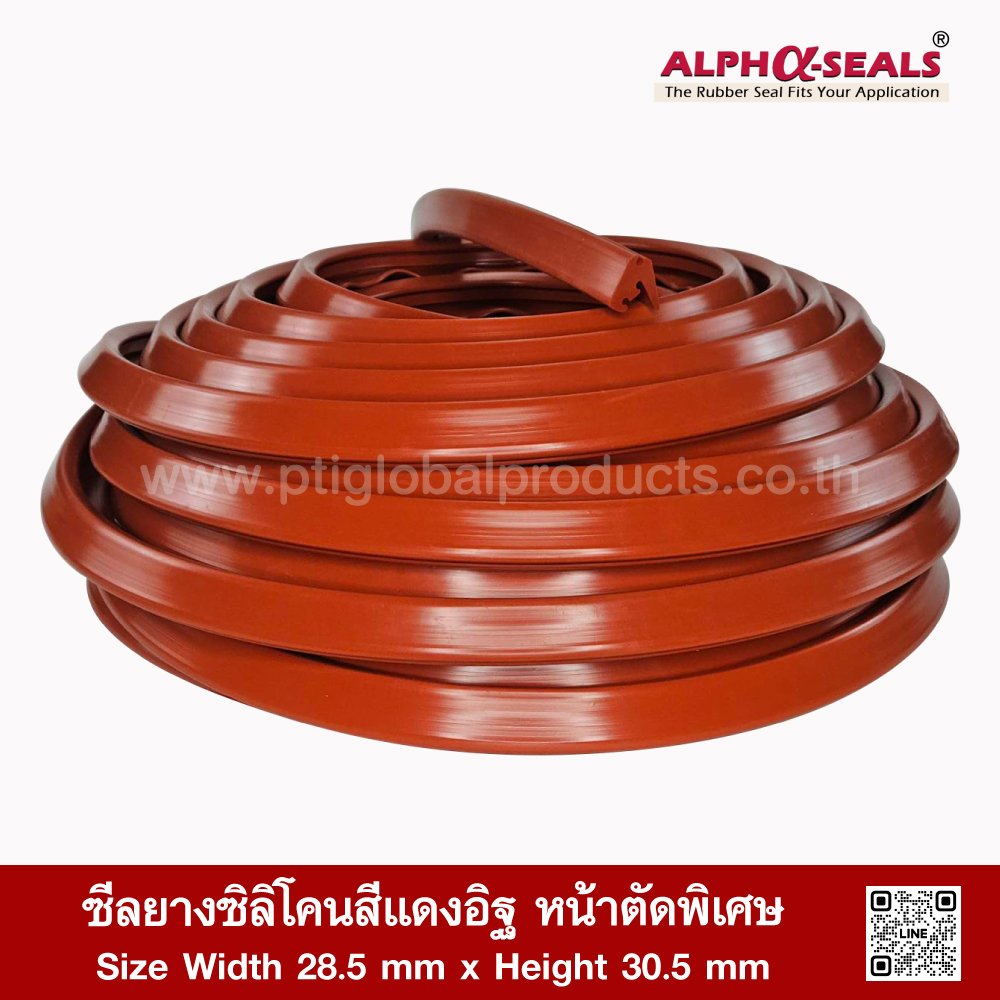 Redbrick Silicone Rubber Seal - Special cross section Size Width 28.5 mm x Height 30.5 mm High heat resistance (Up to +315°C) , Flexible, good recovery, not easily deformed, Resistant to vegetable/animal oils and diluted acid-alkaline chemicals , Resistant to steam/ozone and excellent working environment , Features Food Grade (FDA) , Suitable for use with ovens and food industry machinery Tel : 022577145 MB : 0982539956 / E-mail : info@ptigroups.com / Line OA : @PTIGLOBAL