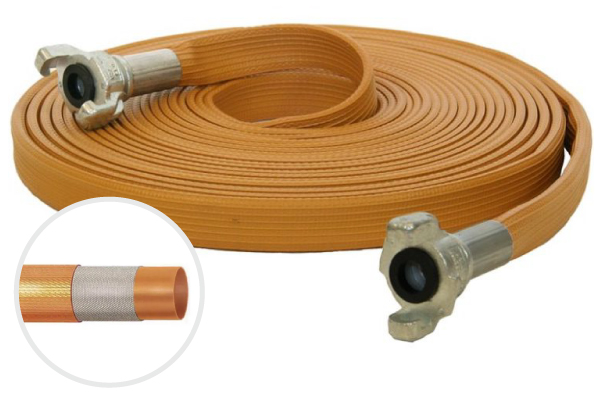 Rubber layflat compressed air hose consists of 3 layers, including inner, reinforced and cover layers. The inner and cover layers are made of high-quality synthetic nitrile rubber or thermoplastic rubber (TPR). Using of nitrile rubber offers important properties like oil, fuel, chemicals, ozone, and weather resistance. While the inner layer produced by an extrusion method has smooth surface with low friction, the cover layer has ribs help improving abrasion resistance and ease of handling. Moreover, the reinforcement in the middle by using polyester woven jacket results in maintaining of flexibility, while increases the high pressure, kink, stretch and twist resistance. All these points make this product a multipurpose hose that is suitable for heavy duty works and various applications.