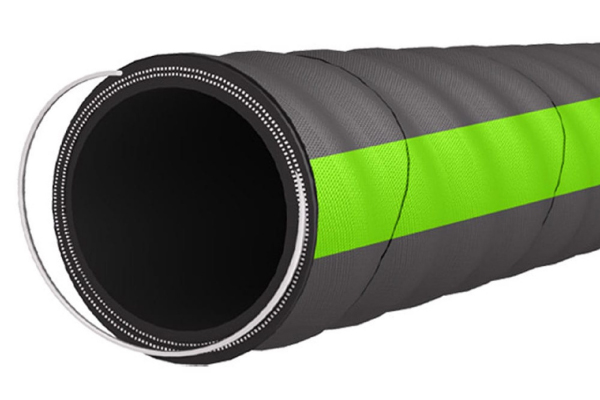 Water suction hose consists of 3 layers, including inner, reinforced and cover layers. While the inner layer is made of black smooth NR and SBR rubber, the cover layer made of black smooth SBR rubber or with the cloth impression offers abrasion resistance and enable the hose to be used with rugged and tough operating conditions. Another important structure is the reinforcement with multi plies of high strength synthetic fibers and helix steel wires helping the hose to withstand higher pressure and vacuum. Thus, the hose is suitable for water and fluid suction applications. Moreover, it also provides solid structure and kink resistance features for the hose. This hose can be used for both suction and discharge of fluids in many industries, especially those with noncorrosive fluids.
