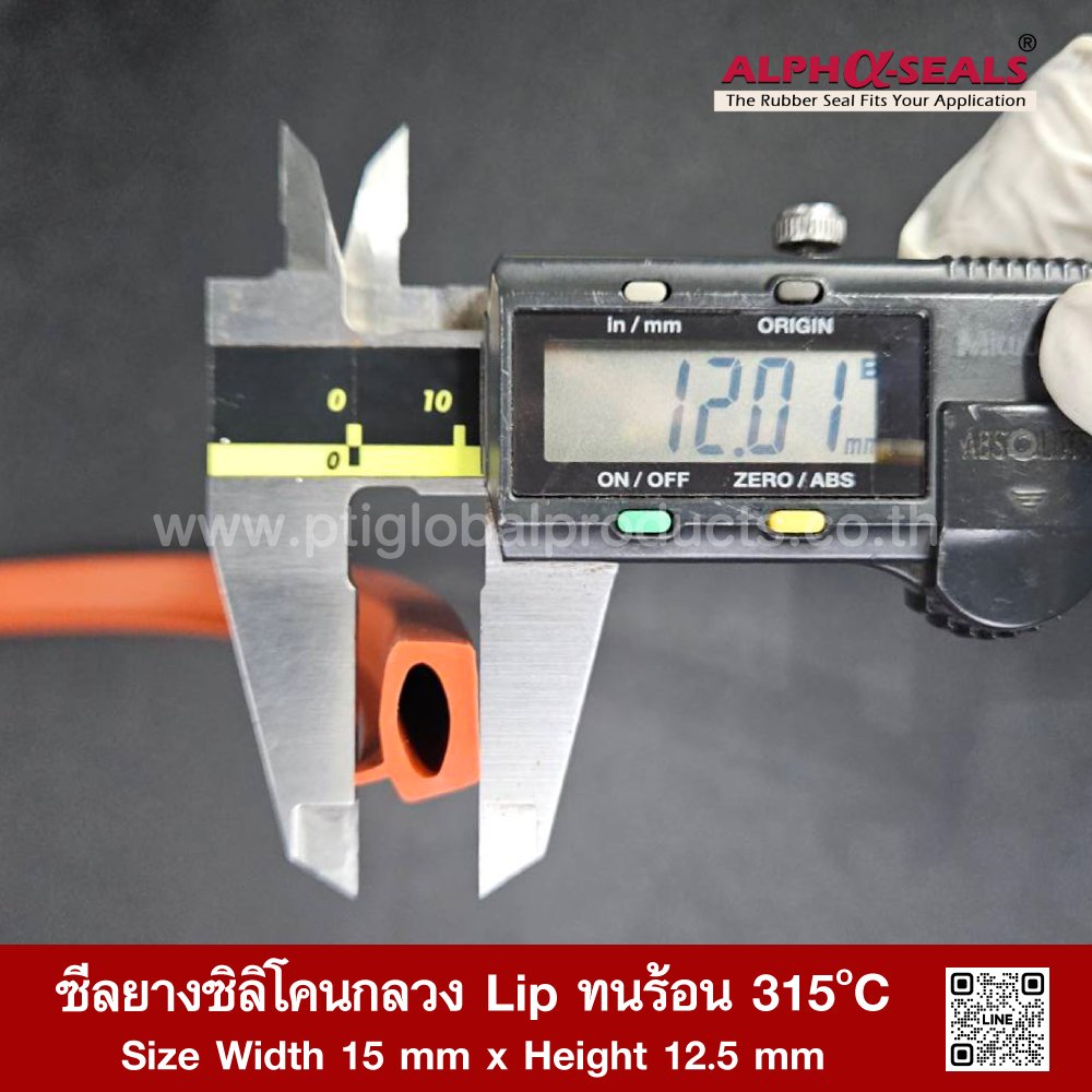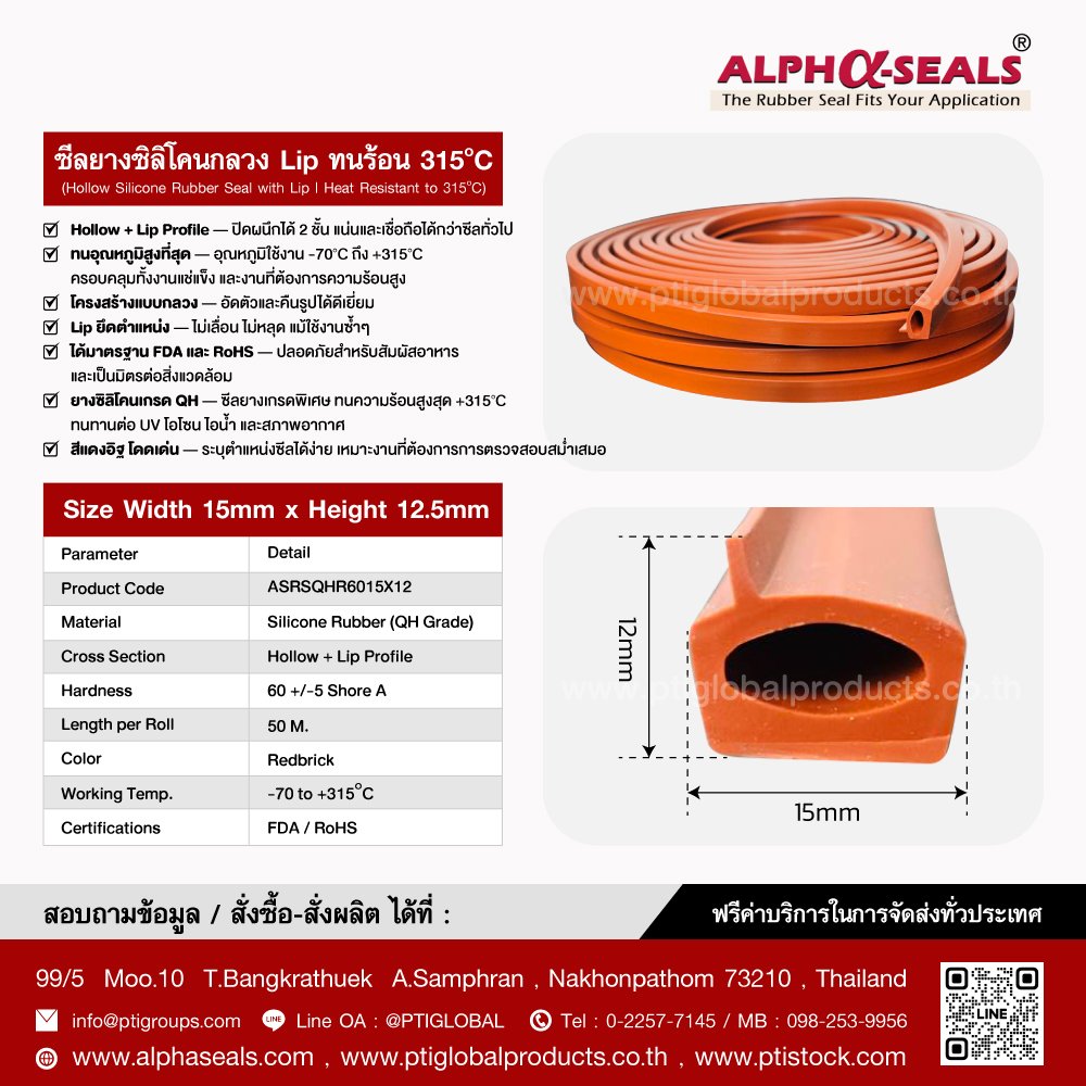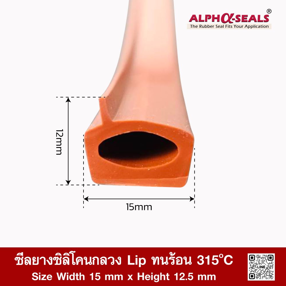 ซีลยางซิลิโคนกลวง Lip ทนร้อน 315°C | AlphaSeals® | 15×12มม. 50เมตร | สีแดงอิฐ | FDA RoHS